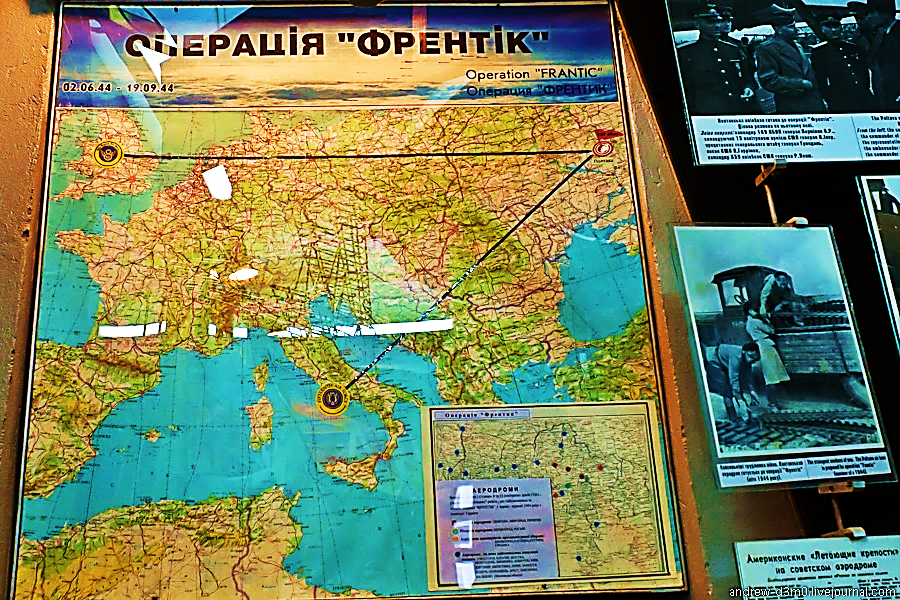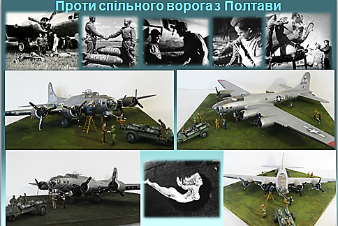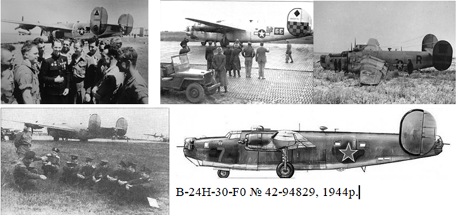 Відповідь досить проста. Справа в тому, що авіабаза в Полтаві розглядалась не тільки як місце базування авіації союзників і обслуговуючого персоналу. Вона мала і інші цілі в ході проведення операції. Це транзитний пункт військово-дипломатичних делегацій союзників, збірний пункт членів екіпажів збитих і пошкоджених літаків і, як наслідок—пункт прийому самих літаків, що здійснювали вимушені посадки на території підконтрольній військам Червоної Армії. Ось чому екіпажі пошкоджених над Німеччиною американських літаків приймали рішення продовжувати політ на схід і здійснювали посадки при першій можливості, знаходячись уже за лінією фронту. Пілоти таких літаків відправлялись в Англію через Іран, а підбиті машини оглядала спеціальна комісія союзників і вирішувала питання щодо подальшої долі матеріальної частини. Із згадуваних 162-х літаків лише 18 були повернуті в ВПС США. Іншим віднайшлось досить несподіване застосування. Чотиримоторні літаки В-17 і В-24, зібрані із кількох машин в одну, ставали навчальними машинами для пілотів 45-ї авіадивізії ВПС СРСР в час підготовки до освоєння вітчизняного аналога американського Б-29—Ту-4. Саме така була доля B-24H-30-F0 № 42-94829, що 14 серпня 1944р здійснив вимушену посадку в 30км західніше Коростеня на Житомирщині. Після ремонту машина була передана в 890 БАП і застосовувалась як навчальна в Казані. На фото нижнього ряду додатку 5 цей літак станом на 03 липня 1948р, а поруч—реконструкція його загального вигляду після ремонту, спричиненого аварійною посадкою на Житомирщині.